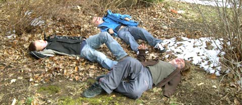 Thomas: Du hast wirklich gut gespielt (kichert). Aber als Toter muss man ja auch nicht gerade gut schauspielern können!