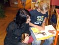 Für nicht mindere Begeisterung, obwohl der Hunger der Augen jenen des Bauches bei manchem/mancher übertraf, sorgte das anschließende Pizza-Essen in der Bibliothek. Dass volle Bäuche nur ungern studieren ist landläufig bekannt; dass sie aber in keinster Weise die Lesemotivation beeinträchtigen vielleicht weniger - zumindest nicht die der Jungdetektive. Eingehüllt in Schlafsäcke und bewaffnet mit Taschenlampen begann eine zweistündige Krimi-Lesereise mit Lagerfeuerromantik.